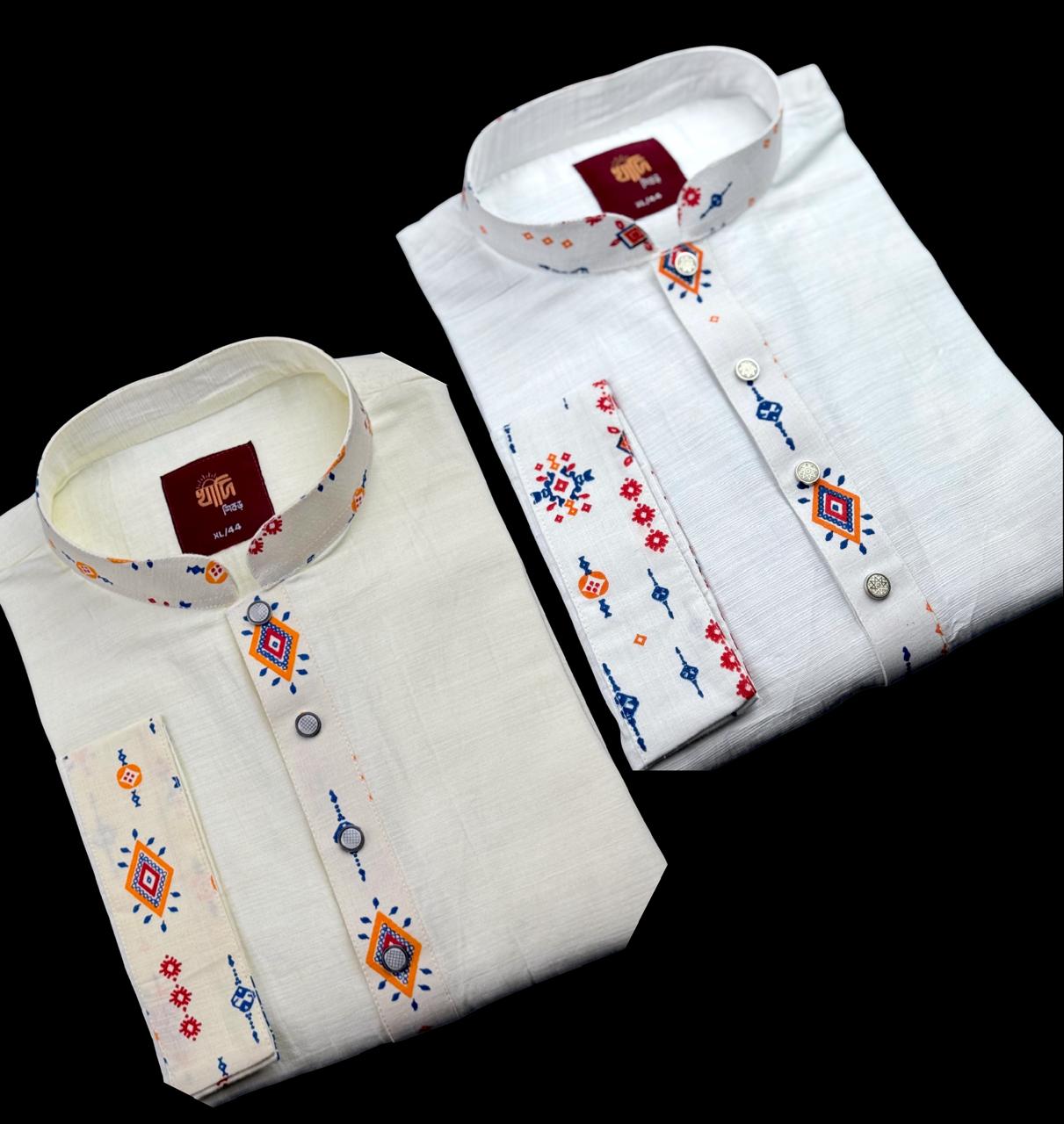 খাদি পাঞ্জাবী কনট্রাস্ট(সাদা/অফ হোয়াইট)